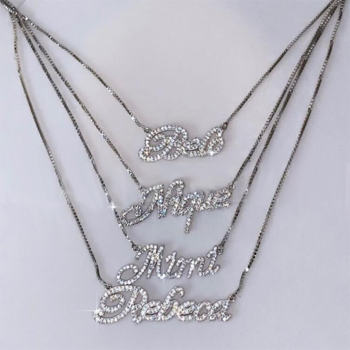 UWIN Custom Stainless Steel Name Necklace With Rhinestones Letters Choker Personalized Name Pendant Chain Accessories Jewelry