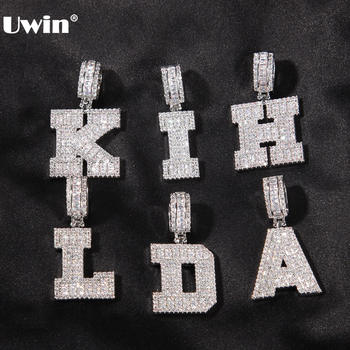 UWIN Customized Name Pendent Necklaces for Women Iced Out Small Baguette Cubic Zirconia Letters Personalized Hip Hop Jewelry