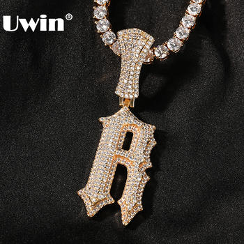 UWIN 2022 New Initial Brush Cursive Letter Pendant for Women Men Ice Out Cubic Zircon Alphabet Charms Fashion Hip Hop Jewelry