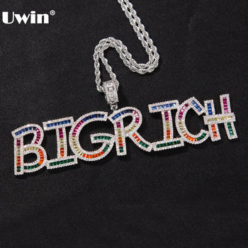 UWIN Custom Baguette Name Pendant Necklace Colorful Stones Full Iced Cubic Zirconia Hiphop Jewelry Letters Fashion Jewelry