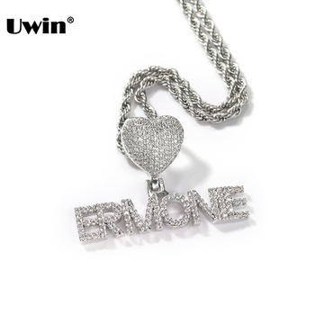 UWIN Custom Bubble Letter Pendant Necklaces Heart Bezel Iced Out CZ Personalized Plate Pendant Necklace Charm Hiphop Jewelry